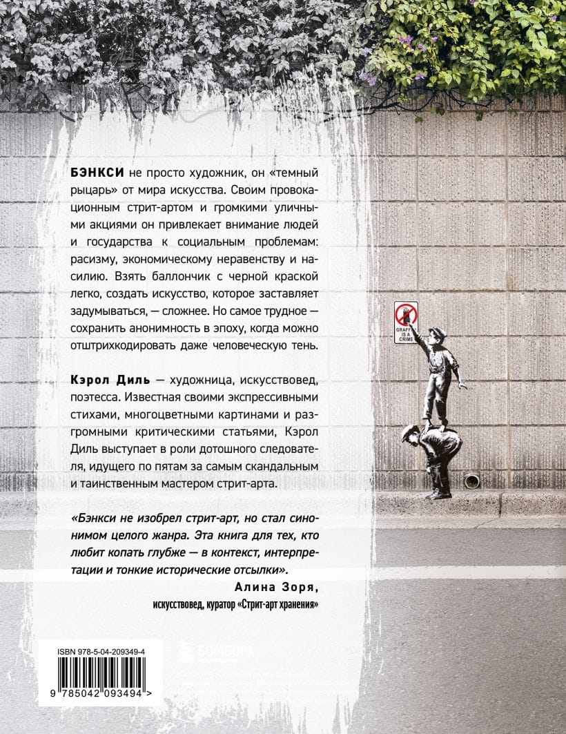 Кэрол Диль — художница, поэтесса, искусствовед — в этой книге берётся за расследование жизни и творчества самого загадочного арт-активиста XXI века. Кто он? Почему его работы цепляют миллионы? И как ему удается оставаться невидимым в мире, где зашифровать можно даже дыхание?