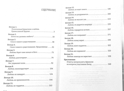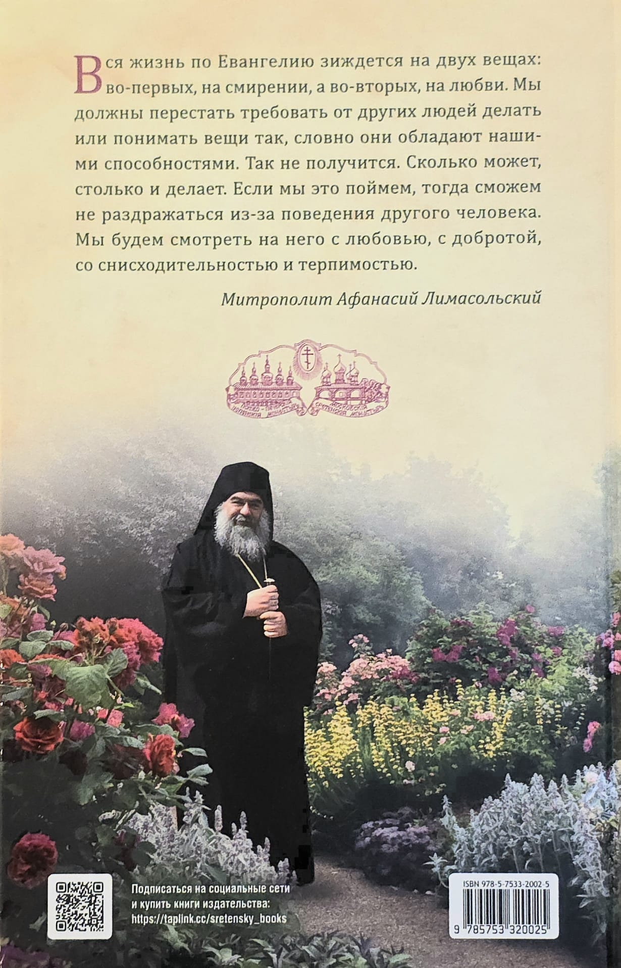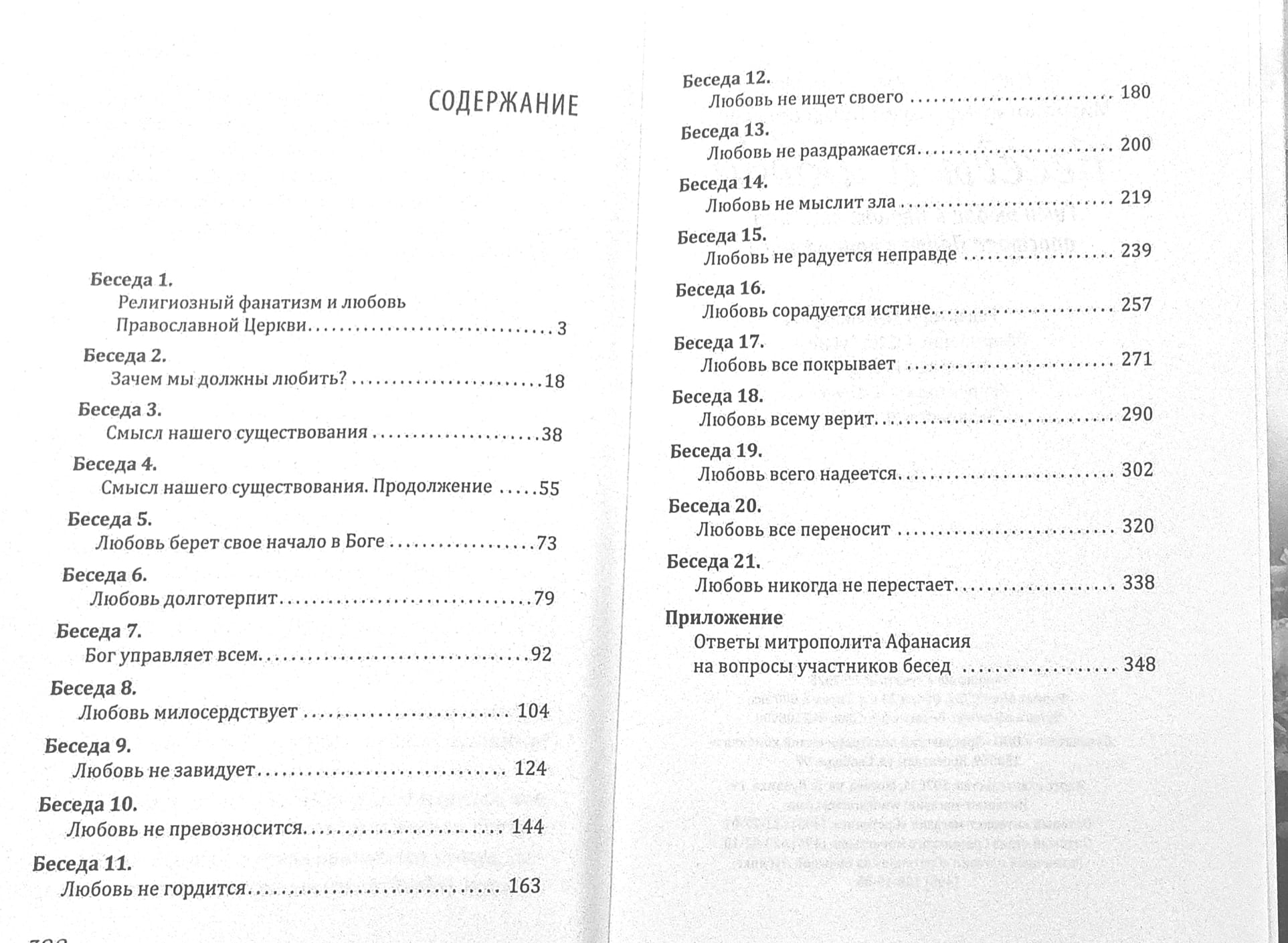 В книге известного проповедника митрополита Лимасольского Афанасия (Николау), хранителя духовных традиций афонских старцев, собраны беседы, посвященные размышлениям о «Гимне любви» из Первого послания апостола Павла к Коринфянам. Настоящая любовь, считает владыка, берет свое начало в Боге и распространяется на людей и на все творение Божие, потому что «человек не может выразить себя нигде, кроме любви». Отеческое слово о любви митрополита Афанасия, исполненное сострадания к людям, переплетается с воспоминаниями о жизни на Святой Горе и с размышлениями над жизнью современного общества.