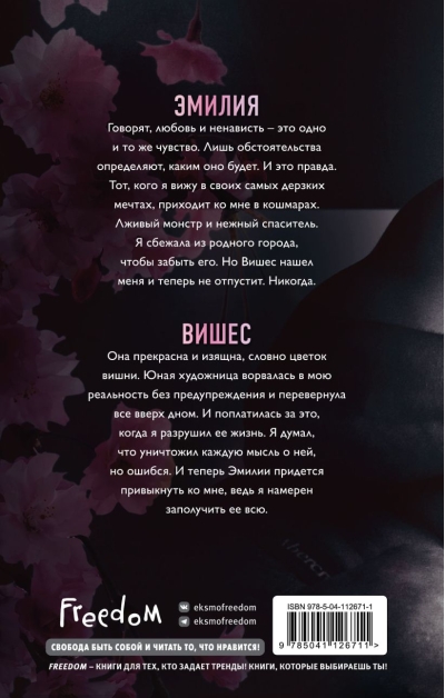 Говорят, любовь и ненависть - это одно и то же чувство. Лишь обстоятельства определяют, каким оно будет. И это правда. Тот, кого я вижу в своих самых дерзких мечтах, приходит ко мне в кошмарах. Лживый монстр и нежный спаситель. Я сбежала из родного города, чтобы забыть его. Но Вишес нашел меня и теперь не отпустит. Никогда.