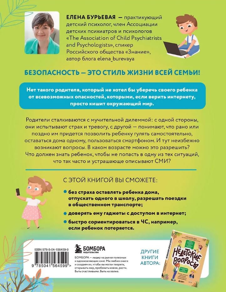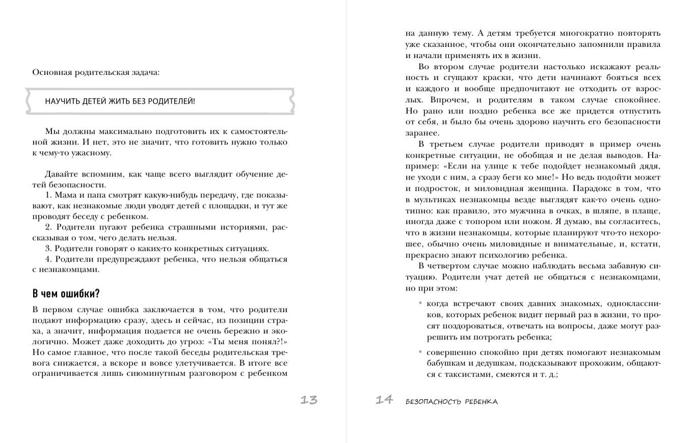 Наш мир всегда был полон опасностей, и больше всех опасностям подвержены дети из-за недостатка знаний и жизненного опыта. Каждый родитель волнуется о своем ребенке, пытается его уберечь от плохого влияния, несчастных случаев, подозрительных незнакомцев. В своей книге детский практикующий психолог Елена Бурьевая делится самым действенным способом, как уберечь ребенка, — обучить его вопросам безопасности. Автор уделяет внимание каждой составляющей жизни ребенка и помогает родителям эффективно преподнести необходимую информацию.