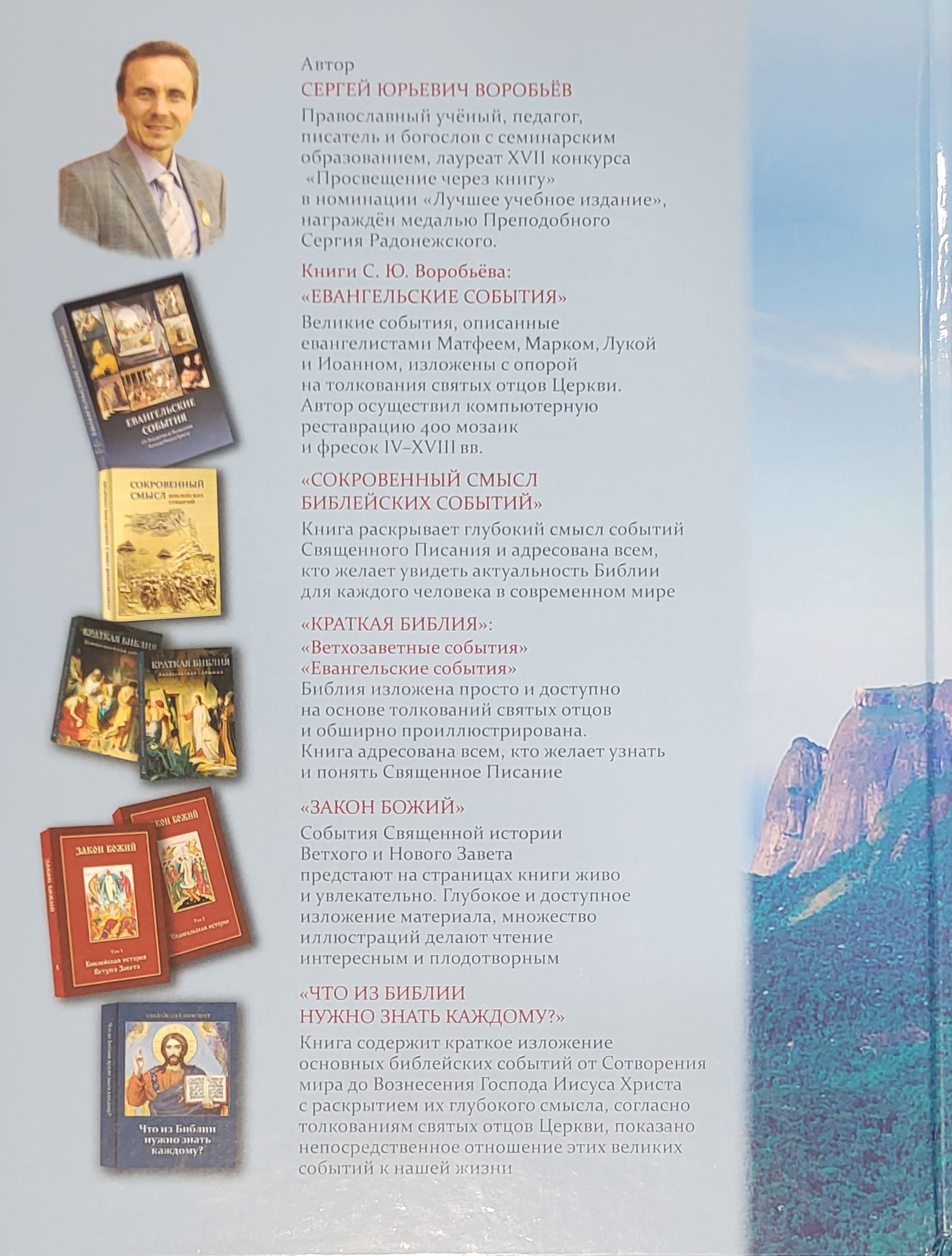 В книге изложены события Священного Писания от Сотворения мира до Вознесения Христа с историческими и археологическими сведениями, естественно-научными открытиями XIX-XXI вв., что позволяет глубже понять как Библию, так и Всемирную историю.