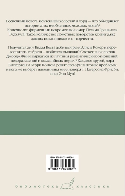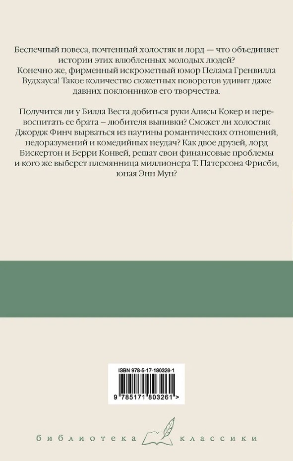 Беспечный повеса, почтенный холостяк и лорд — что объединяет истории этих влюбленных молодых людей? Конечно же, фирменный искрометный юмор Пелама Гренвилла Вудхауса! Такое количество сюжетных поворотов удивит даже давних поклонников его творчества.