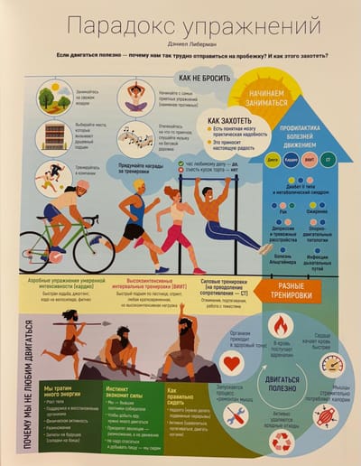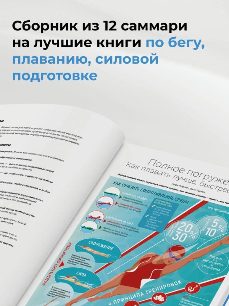 Как же быть? Двигаться нужно, времени на чтение нет, тренеры дороги, но подходить к тренировкам хочется грамотно и без травм… Мы знаем эту дилемму, искали и нашли ей решение! Собрали все лучшие книги по спорту, прочли их за вас, отжали, сохранив самую суть, сложили в один сборник из 12 бестселлеров, и к каждому нарисовали инфографики для наглядной демонстрации и мотивации.