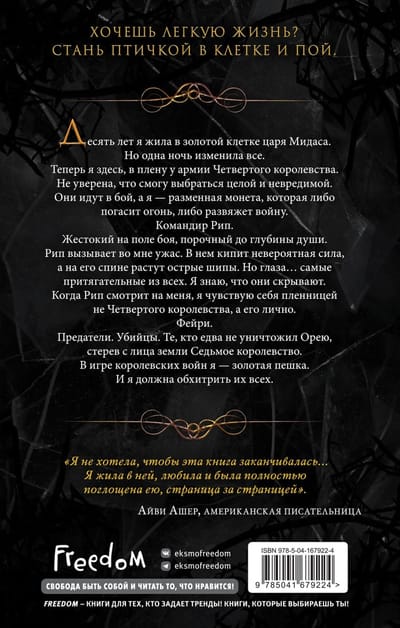 Командир Рип. Жестокий на поле боя, порочный до глубины души. Рип вызывает во мне ужас. В нем кипит невероятная сила, а на его спине растут острые шипы. Но глаза… самые притягательные из всех. Я знаю, что они скрывают. Когда Рип смотрит на меня, я чувствую себя пленницей не Четвертого королевства, а его лично.
