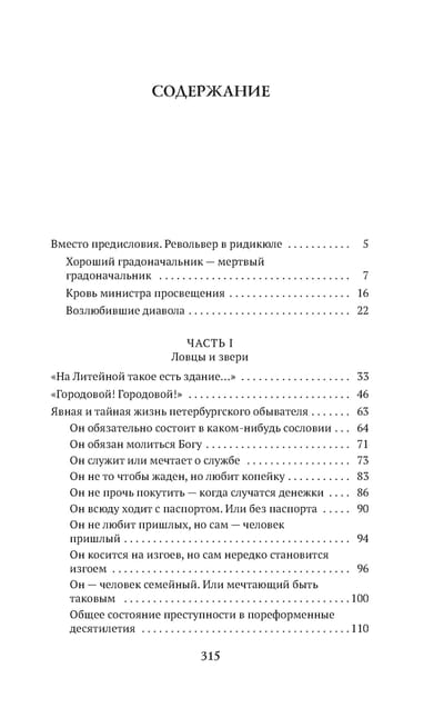 Из книги можно узнать о состоянии правоохранительной системы, судов, полиции, тюрем, особенностях правовых отношений той эпохи. Кроме того, читателю предлагаются своего рода экскурсии по местам преступлений, совершенных в разных районах города (Сенная площадь, Коломна, окрестности Обводного канала, Васильевский остров и др.).