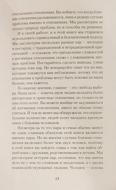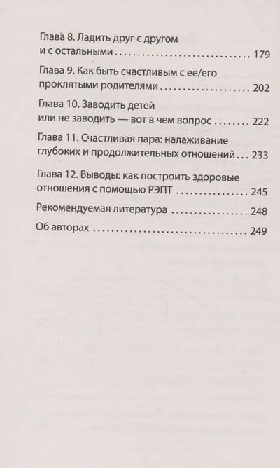 Ваши отношения дают трещину? Вы меняете партнеров, а проблемы при этом остаются? Вы чувствуете, что со временем любовь остывает? Люди, не желающие признать, что в ситуации виноваты оба партнера, переносят свои проблемы в следующие отношения. Как отмечают в данной книге Эллис и Харпер, легче обвинить другого, чем решать проблемы самому. Читатели, которые надеются с помощью этой книги наладить свои отношения, несомненно, получат результат. Во-первых, книга написана просто и увлекательно. Во-вторых, для пояснения идей авторов приводятся примеры и диалоги. В-третьих, запутанных терминов и «психологической болтовни» здесь практически нет — это понятная книга с логичными идеями. В-четвертых, упражнения в конце глав дадут почву для размышлений и помогут сделать важные выводы. Эта книга поможет избавиться от неправильных привычек и вступить на новый путь отношений.