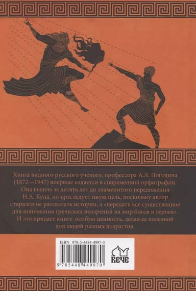 Книга видного русского ученого, профессора А.Л. Погодина 1872-1947 впервые издается в современной орфографии. Она вышла за десять лет до знаменитого переложения Н.А. Куна, но преследует иную цель, поскольку автор старался не рассказать истории, а передать все существенное для понимания греческих воззрений на мир богов и героев. И это придает книге особую ценность, делая ее полезной для людей разных возрастов.