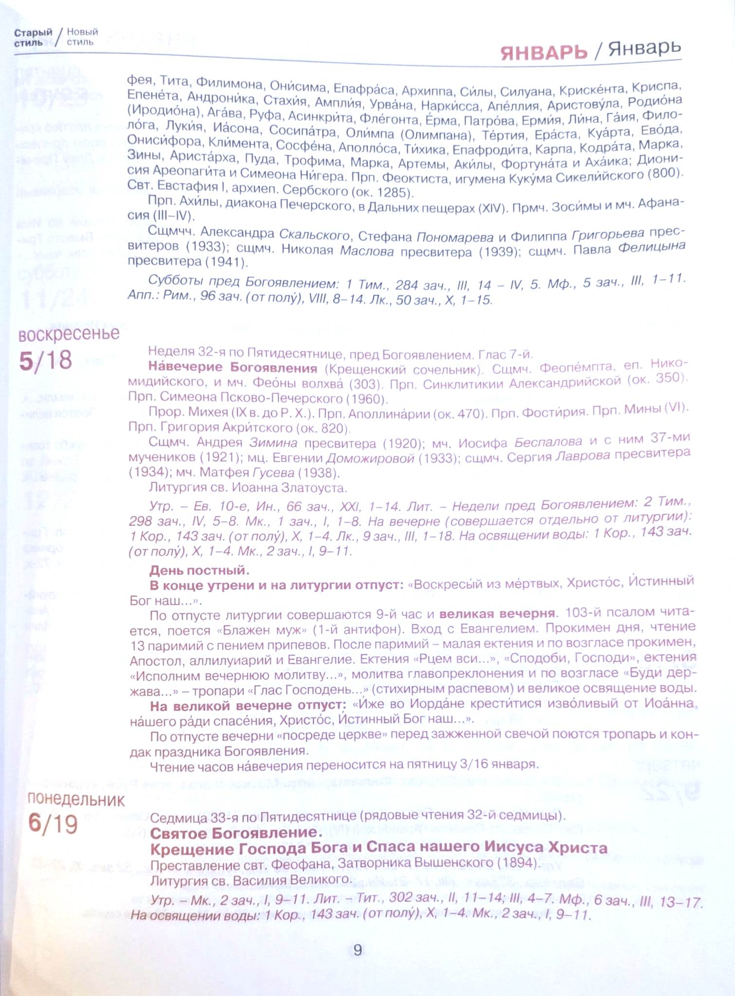 Богослужебный месяцеслов на 2026 год