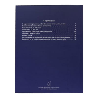 Данное издание содержит подробный месяцеслов, указатель чтений из Священного Писания на каждый день и расширенные уставные заметки.