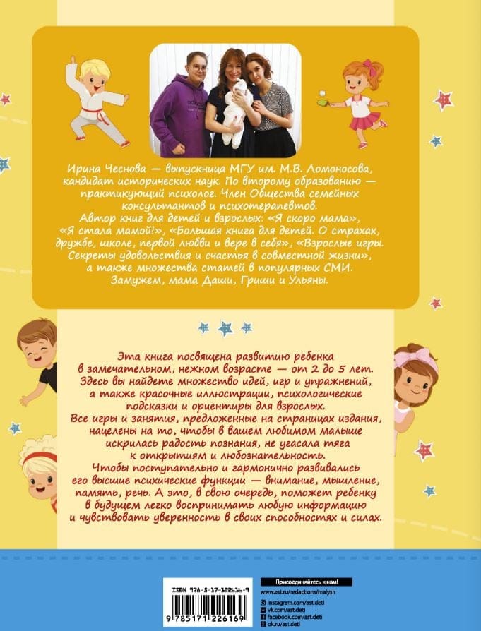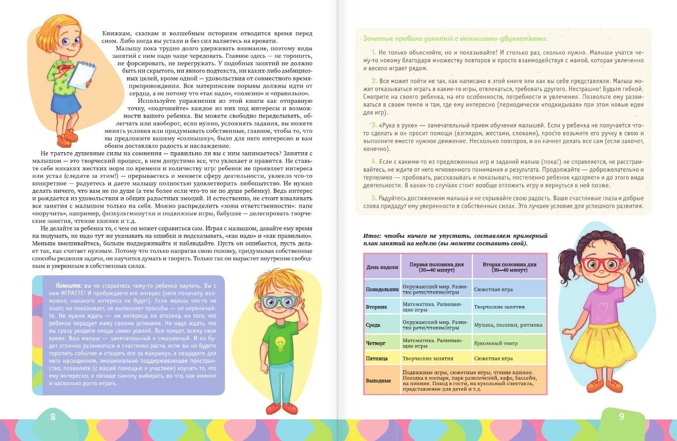 Эта книга — яркое, красочное пособие для занятий с детьми от 2 до 5 лет. Здесь вы найдете стихи и потешки для пальчиковой гимнастики и логоритмики, игры на развитие крупной и мелкой моторики, мышления, внимания, памяти, речи, игровые задачки на основы математики, список интереснейших детских книг, идеи для творчества, а также тщательно подобранные иллюстрации для освоения ребенком окружающего мира. Книга создана специально для того, чтобы вы могли предложить своему любимому малышу игры и упражнения, которые подходят ему по возрасту, доставят удовольствие, наполнят открытиями каждый день и одновременно будут способствовать его всестороннему, гармоничному развитию.