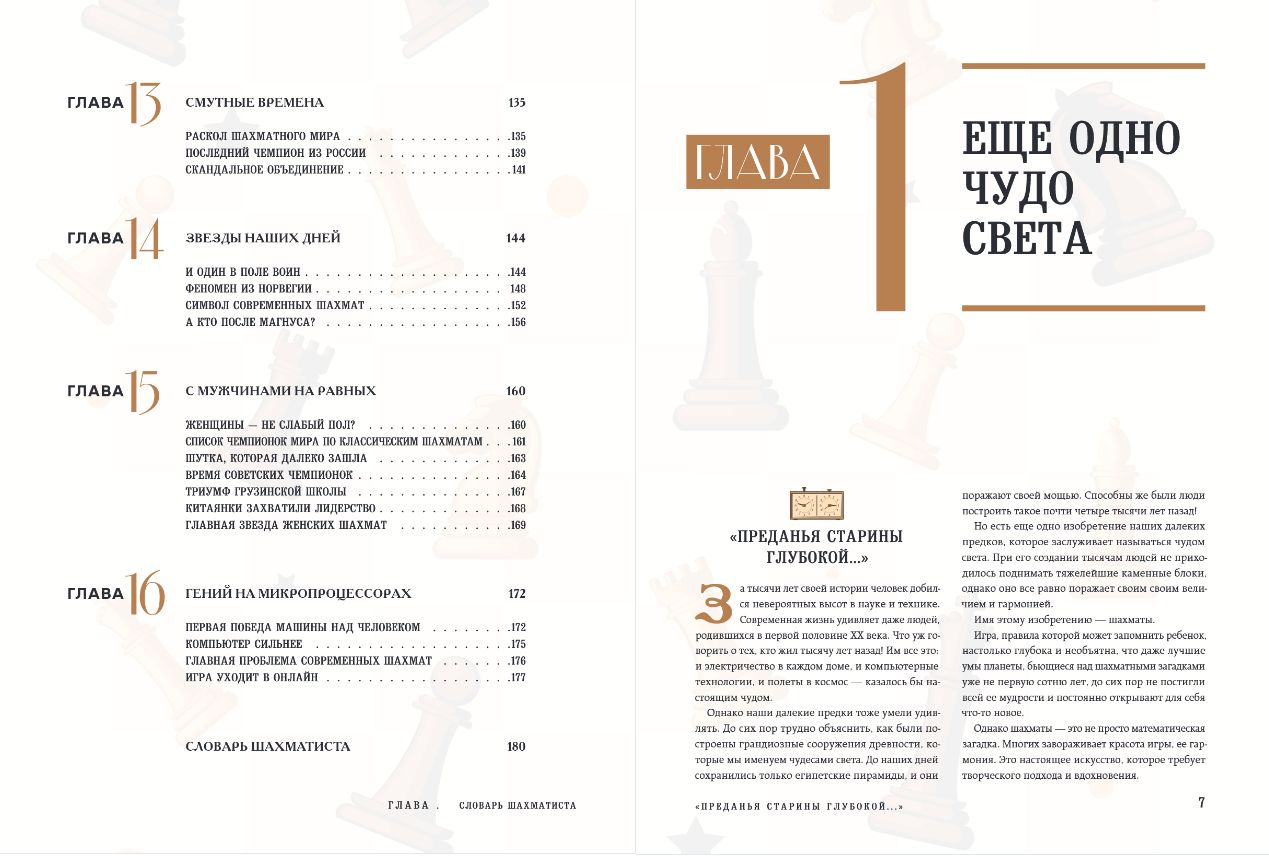 - Историю шахмат от зарождения до современности красочные иллюстрации, отражающие историю игры;