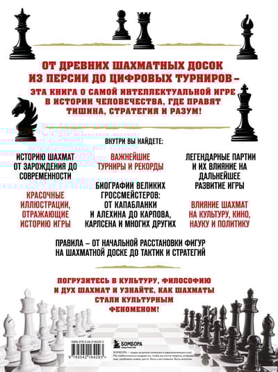 От древних шахматных досок из Персии до цифровых турниров — эта книга о самой интеллектуальной игре в истории человечества, где правят тишина, стратегия и разум!