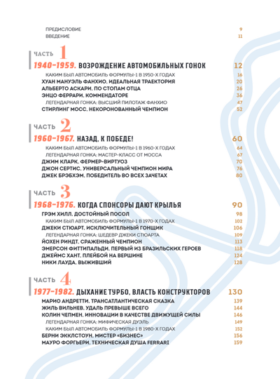 От Хуана Мануэля Фанхио до Льюиса Хэмилтона и Макса Ферстаппена, вы встретите здесь всех легендарных гонщиков, прислушаетесь к звуку двигателей и переживёте гениальные обгоны, роковые вылеты с трассы и внезапные повороты сюжета.
