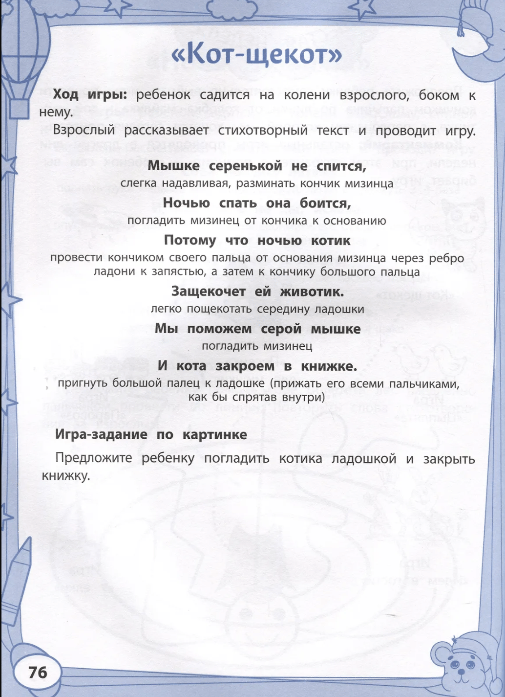 В книге представлен рассчитанный на шесть недель курс телесно ориентированных и психомоторных игр, который обеспечивает постепенное формирование у малыша полезной привычки замедления своей активности и желания идти спать.