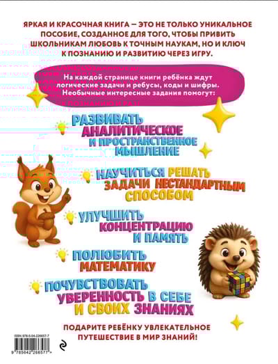 Большая книга логических игр и математических задач с яркими картинками по сюжетам популярных сказок подойдет мальчику или девочке 7, 8, 9, 10 лет. Книга пригодится и для самостоятельных занятий, и для организации интеллектуальных конкурсов на детском празднике, и для коллективной или индивидуальной работы в школе. Это незаменимый помощник для родителей и учителей, стремящихся обеспечить качественную подготовку ребенка к урокам математики. Внутри — ребусы, кроссворды, лабиринты, головоломки и очень много задач на логику и внимание. Приведены алгоритмы решения нестандартных логических задач, что пробуждает в ребенке интерес и желание добиваться результата. Практика регулярного выполнения заданий способствует развитию уверенности при освоении любого упражнения из школьной программы.
