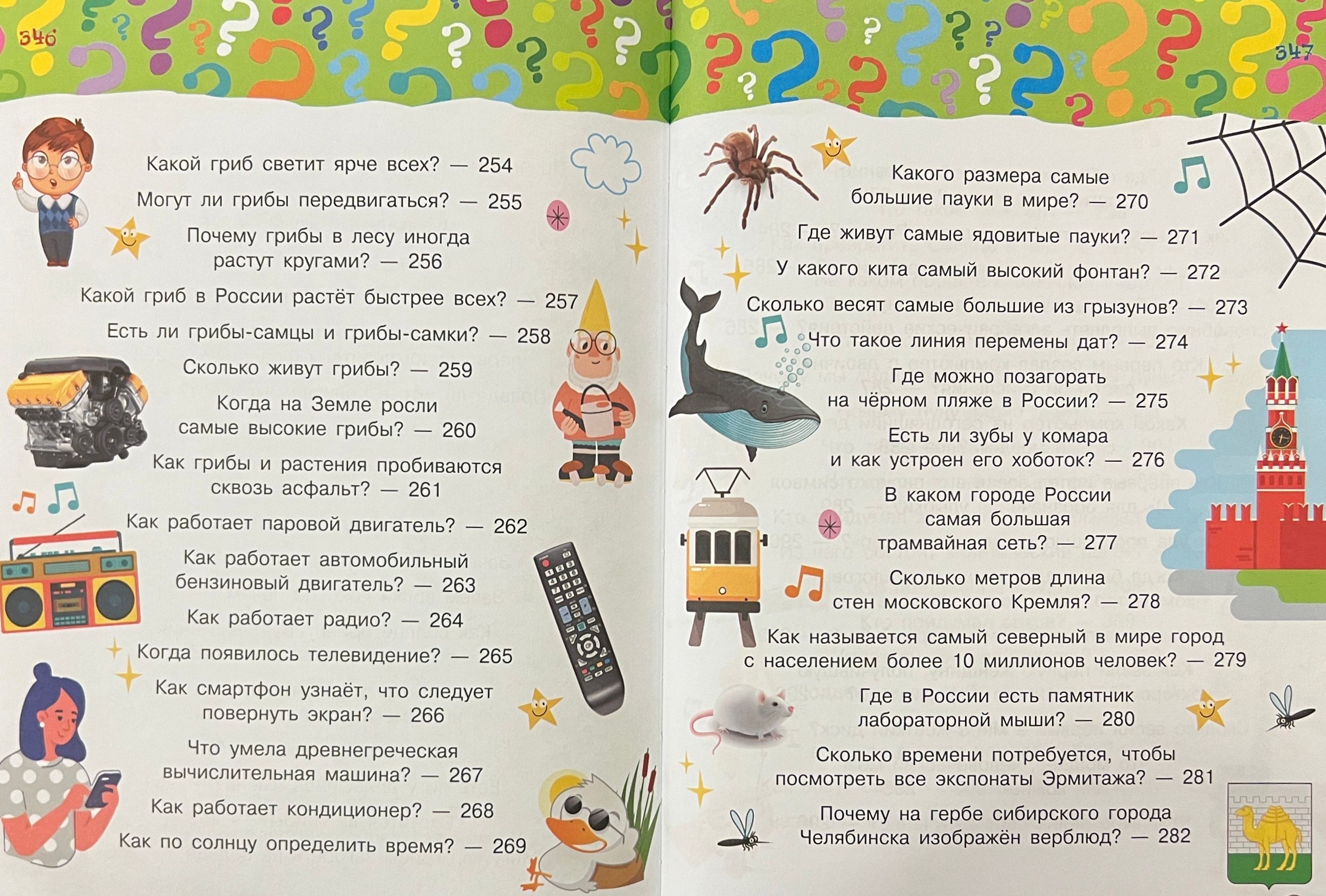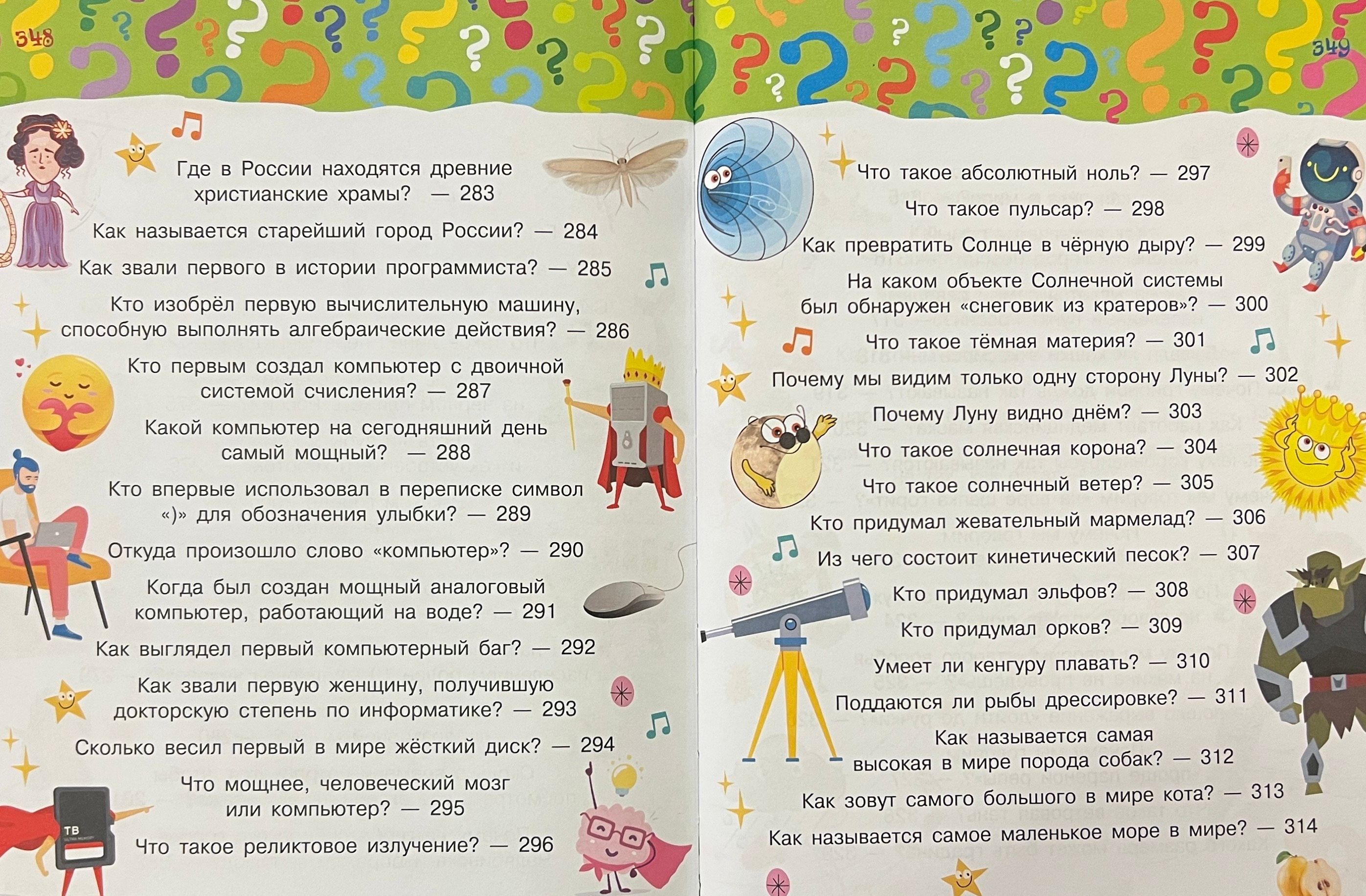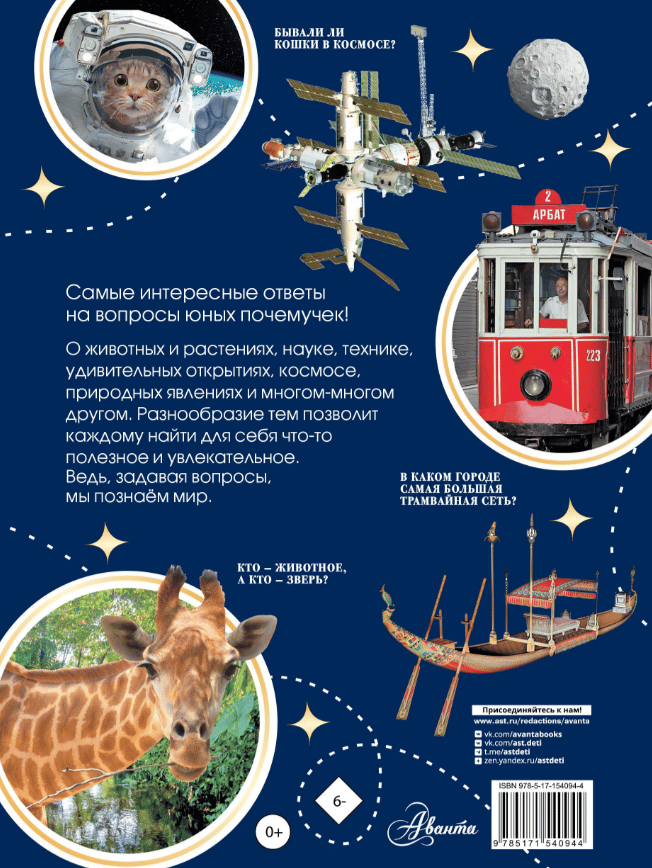 «Большая книга почемучки» — это красочная энциклопедия, в которую вошли вопросы на самые разные темы — от космических открытий до компьютерных ошибок, от памятников архитектуры до орков и эльфов. В книге найдутся вопросы на любой вкус, а занятные и простые ответы не позволят оторваться