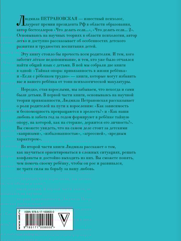 Эту книгу стоило бы прочесть всем родителям. И тем, кого заботит легкое недопонимание, и тем, кто уже было отчаялся найти общий язык с детьми. В ней мы собрали две книги в одной: «Тайная опора: привязанность в жизни ребенка» и «Если с ребенком трудно» - книги, которые могут избавить вас и вашего ребенка от тонн психологической макулатуры.
