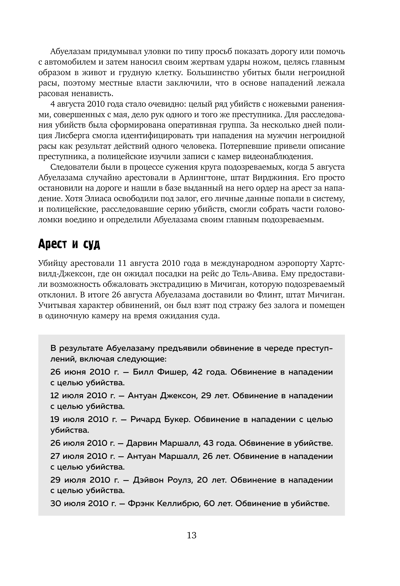 Убийцы из этой книги послужили прототипами для героев известных фильмов и сериалов: «Молчание ягнят», «Психо», «Охотники за разумом», «Техасская резня бензопилой», «Подмена» и другие. В конце вы найдете информацию о том, что наука знает сегодня о психопатах-убийцах и как профайлеры их ловят.