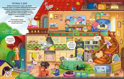 Начинать разглядывать картинки виммельбуха можно уже с года. А с трёх лет ребёнку будет интересно с ним играть и выполнять задания.