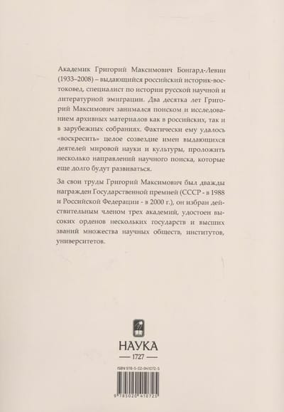 Книга академика трех академий (Российской академии наук, Французской академии надписей и изящной словесности и Шведской Королевской академии словесности, истории и древностей) Григория Максимовича Бонгард-Левина содержит очерки о жизненном и творческом пути ярких представителей российской науки и культуры, которых объединила судьба вынужденного эмигранта. Начальная редакция очерков и публикаций, составивших книгу, появилась в конце 1980-х - начале 2000-х гг., однако в 2008 г. все материалы были переработаны для нового издания. Тернист и извилист был путь этой книги. Ее выход многократно откладывался, переносился из одного издательства в другое. В 2023 г. Григорию Максимовичу исполнилось бы 90 лет, выход этой книги - дань памяти выдающего ученого и замечательного человека, который много сделал для воссоединения русского зарубежья со своей Родиной.