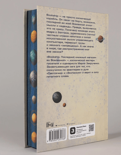 «Bookship. Последний книжный магазин во Вселенной» — космический вестерн писателя и сценариста Марии Закрученко. Захватывающая сага для тех, кто соскучился по авантюрам в духе «Светлячка» и «Экспансии» и верит в силу печатного слова.