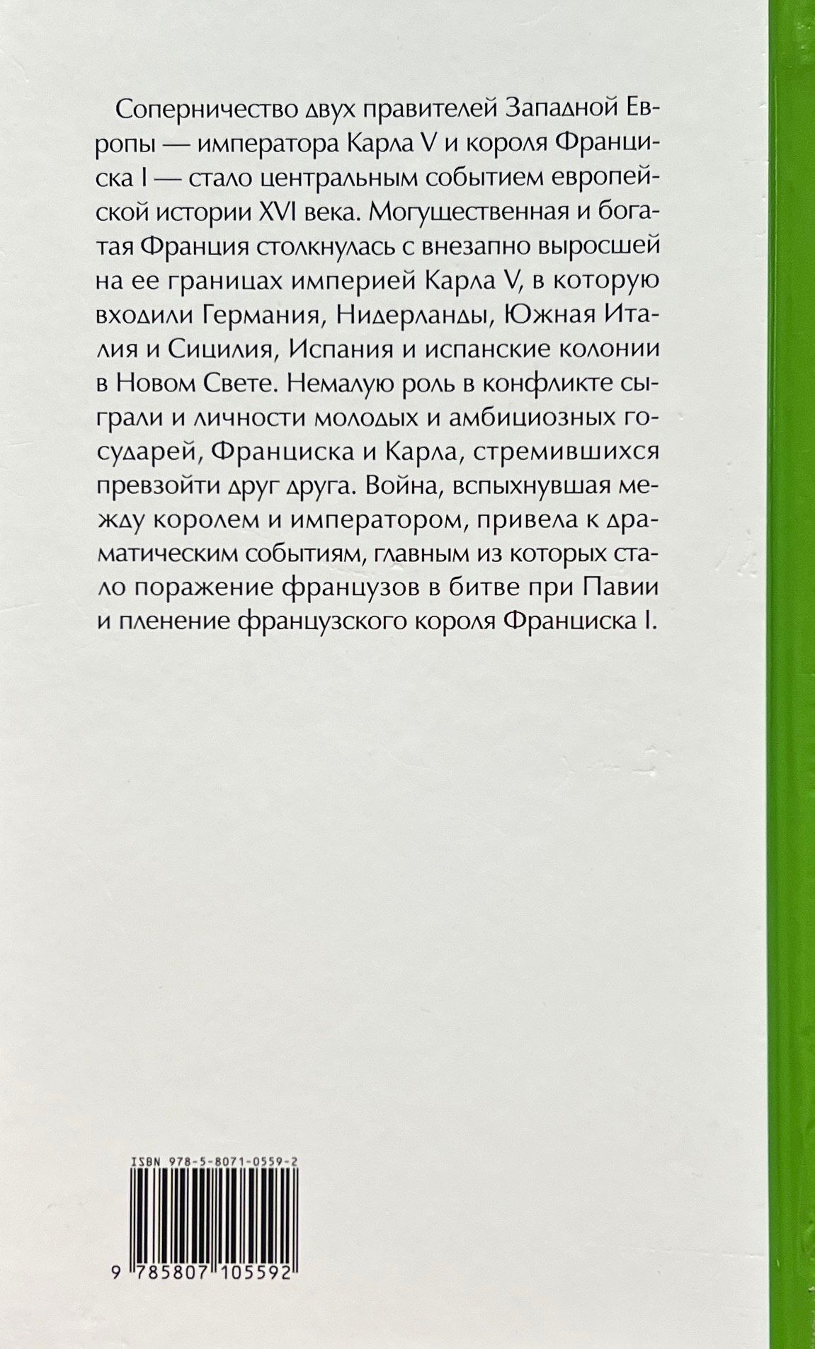 Соперничество двух правителей Западной Европы — императора Карла V и короля Франциска I — стало центральным событием европейской истории XVI века. Могущественная и богатая Франция столкнулась с внезапно выросшей на ее границах империей Карла V, в которую входили Германия, Нидерланды, Южная Италия и Сицилия, Испания и испанские колонии в Новом Свете. Немалую роль в конфликте сыграли и личности молодых и амбициозных государей, Франциска и Карла, стремившихся превзойти друг друга. Война, вспыхнувшая между королем и императором, привела к драматическим событиям, главным из которых стало поражение французов в битве при Павии и пленение французского короля Франциска I.