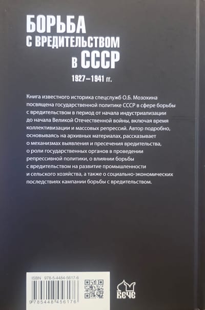 Книга известного историка спецслужб О.Б. Мозохина посвящена государственной политике СССР в сфере борьбы с вредительством в период от начала индустриализации до начала Великой Отечественной войны, включая время коллективизации и массовых репрессий. Автор подробно, основываясь на архивных материалах, рассказывает о механизмах выявления и пресечения вредительства, о роли государственных органов в проведении репрессивной политики, о влиянии борьбы с вредительством на развитие промышленности и сельского хозяйства, а также о социально-экономических последствиях кампании борьбы с вредительством.