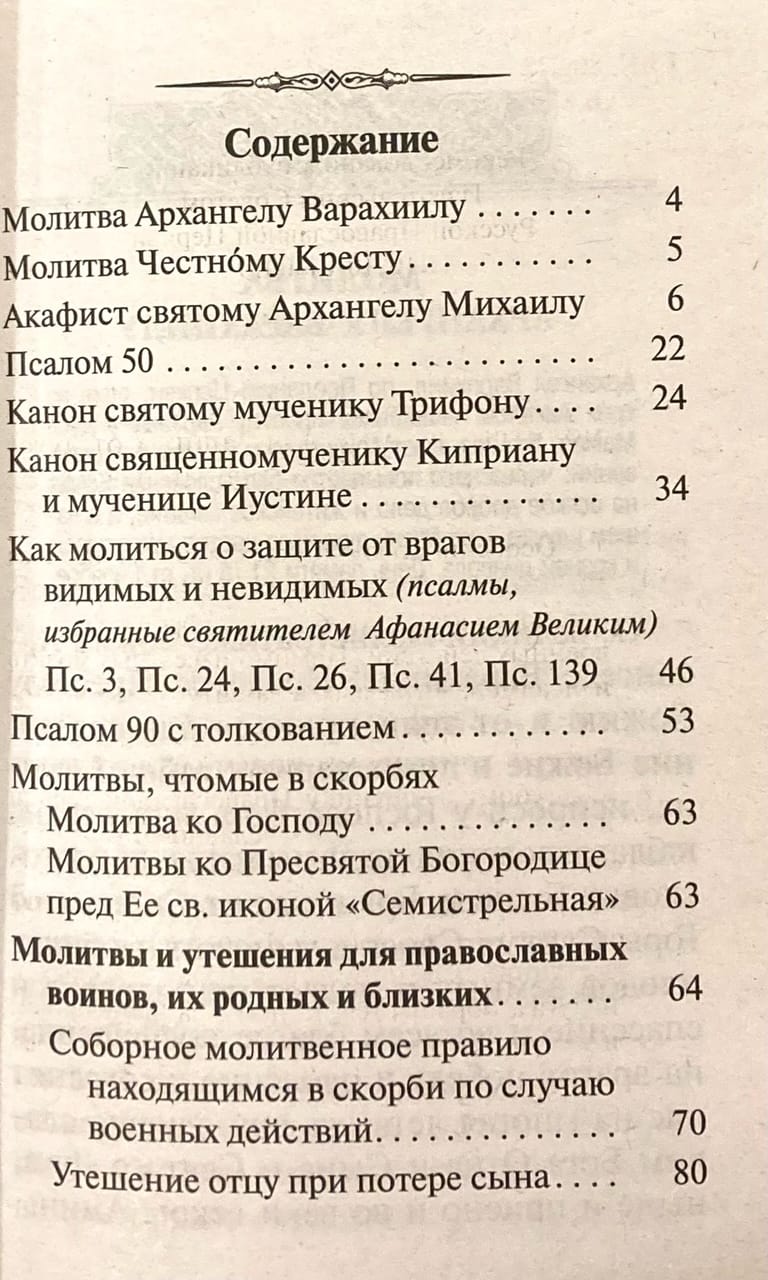 В брошюру «Брань духовная», напечатанную гражданским шрифтом, помимо известных молитв, включен древний Канон и молитва святому Архангелу Михаилу Грозному Воеводе Небесных Сил, к которому мы можем обращаться келейно, как к сугубому защитнику Православной веры и Ангелу Хранителю Руси. Святой Архангел Михаил — «прогонитель демонов», покровитель властей и государства русского, — скорый и верный помощник и заступник каждого, кто в бедах, скорбях и недугах обращается к нему за исцелением и заступничеством от действий нечистой силы.