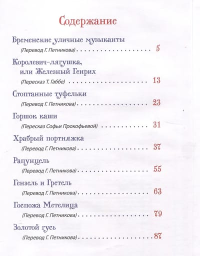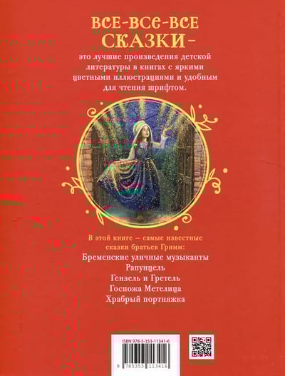 В книгу вошли самые известные сказки, собранные немецкими фольклористами Вильгельмом и Якобом Гриммами: «Бременские уличные музыканты», «Рапунцель», «Гензель и Гретель», «Госпожа Метелица» и многие другие. Тексты печатаются в классических переводах. Книга с красочными иллюстрациями Виталия Дударенко станет отличным подарком для всех любителей сказок.