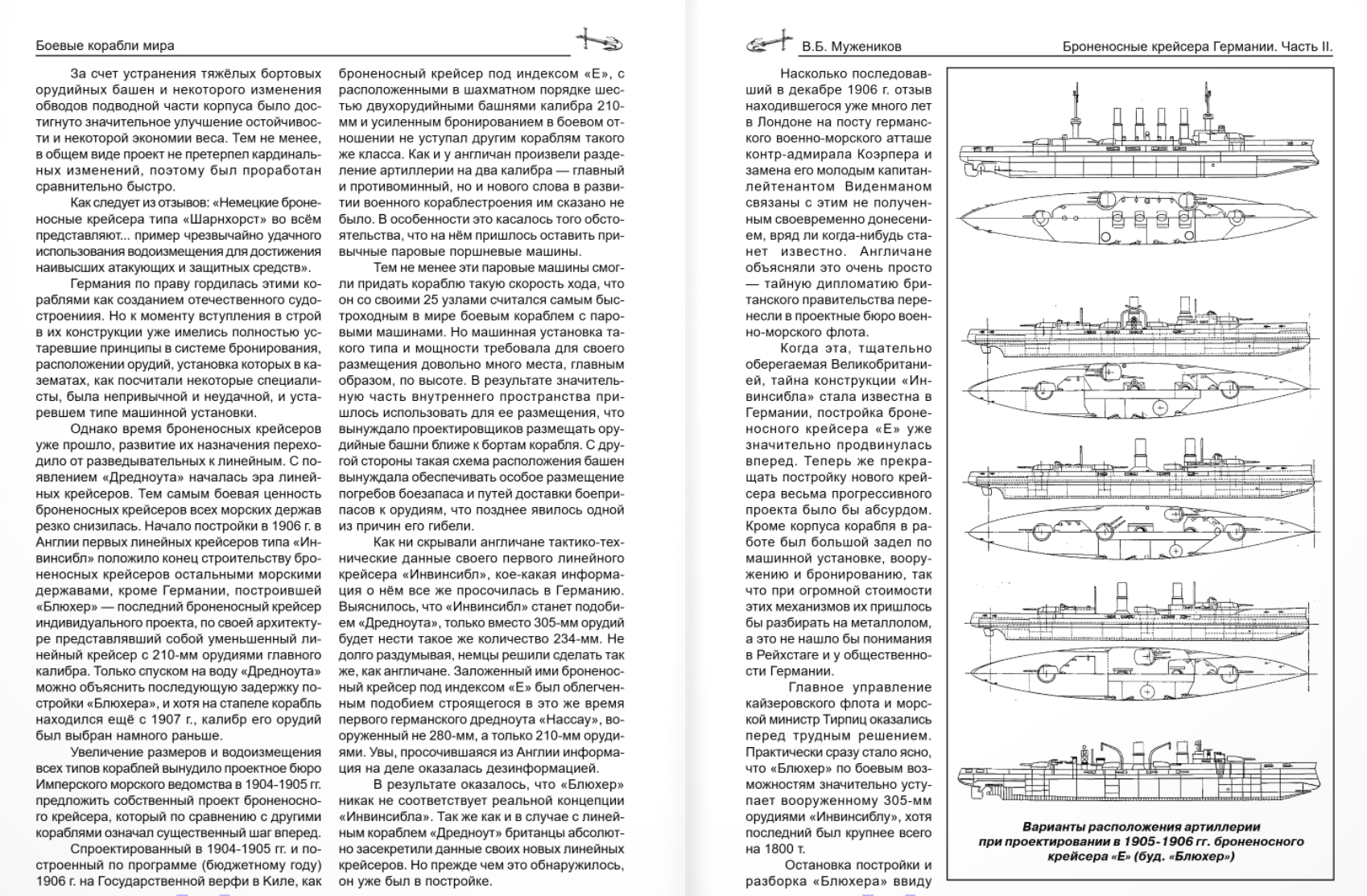 Первые типы германских крейсеров были сходны с эскадренными броненосцами. Более поздние типы, как например «Шарнхорст» и «Гней-зенау», за счёт более слабого и растянутого бронирования и уменьшения калибра главной артиллерии, получили более высокую скорость хода. Затем Главное управление кайзеровского флота и морской министр Тирпиц оказались перед трудным решением. Практически сразу стало ясно, что последний броненосный крейсер «Блюхер» по боевым возможностям значительно уступает вооруженному 305-мм орудиями «Инвинсиблу», который был крупнее всего на 1800 т. Расположение бронирования и вооружения в основном на них осталось то же, как и на линейных кораблях.
