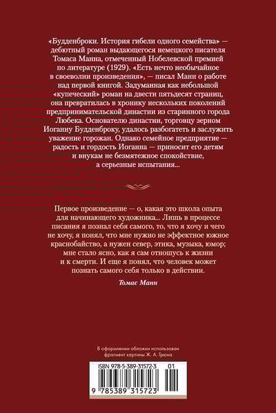 «Будденброки. История гибели одного семейства» — дебютный роман выдающегося немецкого писателя Томаса Манна (1875–1955), отмеченный Нобелевской премией по литературе (1929). «Есть нечто необычайное в своеволии произведения», — писал Манн о работе над первой книгой. Задуманная как небольшой «купеческий» роман на двести пятьдесят страниц, она превратилась в хронику нескольких поколений предпринимательской династии из старинного города Любека. Основателю династии, торговцу зерном Иоганну Будденброку, удалось разбогатеть и заслужить уважение горожан. Однако семейное предприятие — радость и гордость Иоганна — приносит его детям и внукам не безмятежное спокойствие, а серьезные испытания…