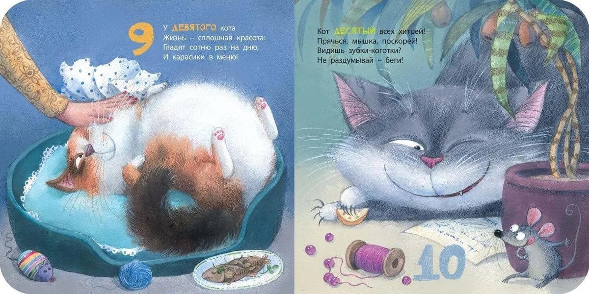 В этой веселой книжке – десять замечательных котиков. И у каждого – своя история, рассказанная в забавных стихах Ксении Валаханович и озорных рисунках Любови Ерёминой-Ношин. Давай считать котиков!