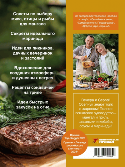 Какое блюдо объединяет людей и создает атмосферу праздника? Конечно, шашлык! Популярные кулинарные блогеры Венера и Сергей Осепчук уверены: вкус сочного мяса или рыбки, приготовленных на огне, невозможно сравнить ни с чем. Их бестселлеры «Люблю и пеку», «Семейная кухня», «Семейная кухня. Перезагрузка», «Доброе утро, страны!» покорили тысячи любителей щедрых домашних застолий. Лауреат премий Top-Blogger 2023 и Легенда Российского Блогинга 2024 делится проверенными рецептами блюд на огне, которые точно захочется повторить. Более 60-ти идей от любимых народных кулинаров!