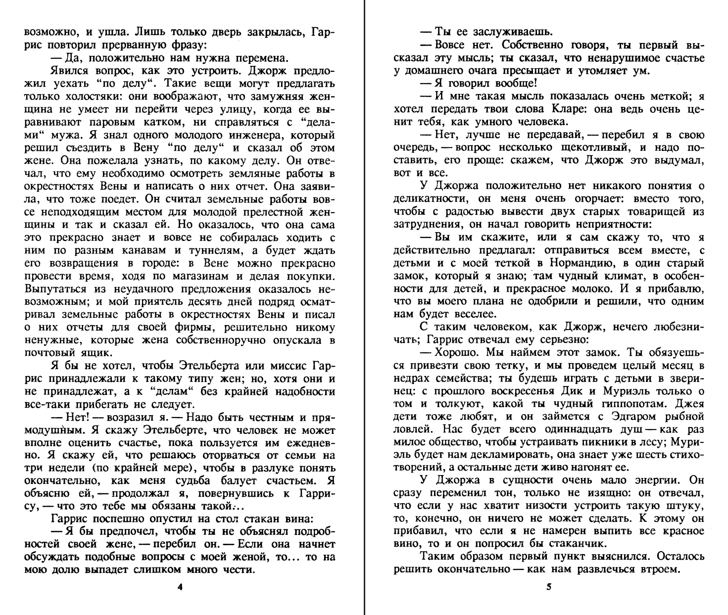 Читателя ждет встреча с полюбившимися героями: Джеем, Джорджем и Харрисом, но только уже повзрослевшими, степенными, благоразумными джентльменами. Персонажи второй книги стали старше, но озорства, веселья в них не убавилось.