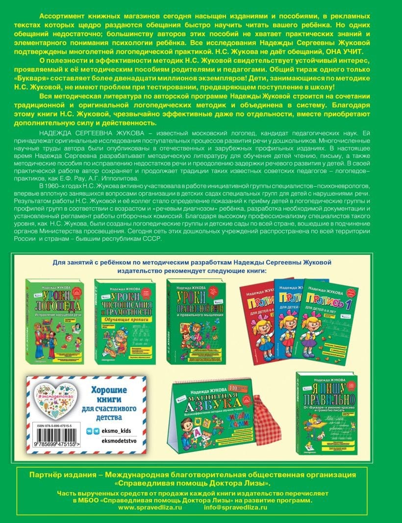 Более 10 лет «Букварь» Н.С. Жуковой входит в ТОП-50 розничных продаж, общий тираж «Букваря» составляет более 5 млн экземпляров. Автор классического букваря — логопед с 30-летним стажем работы, кандидат педагогических наук. Ей принадлежат оригинальные исследования поступательных процессов развития речи у дошкольников. «Букварь» — пример классического учебного пособия, по которому успешно выучились уже три поколения детей.