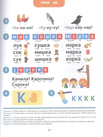 - Уже на 10-м уроке ребенок самостоятельно прочитает первое слово, а на 19-м - первое предложение.