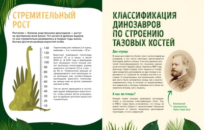 Яркие иллюстрации позволят вам вблизи рассмотреть древних рептилий, увидеть их огромные рога, длинные перья, острые зубы и когти! Совершите настоящее путешествие во времени!