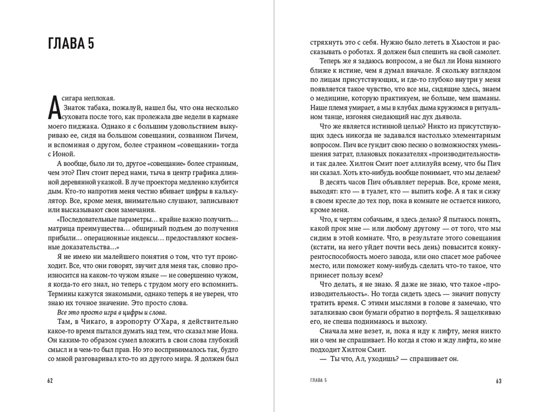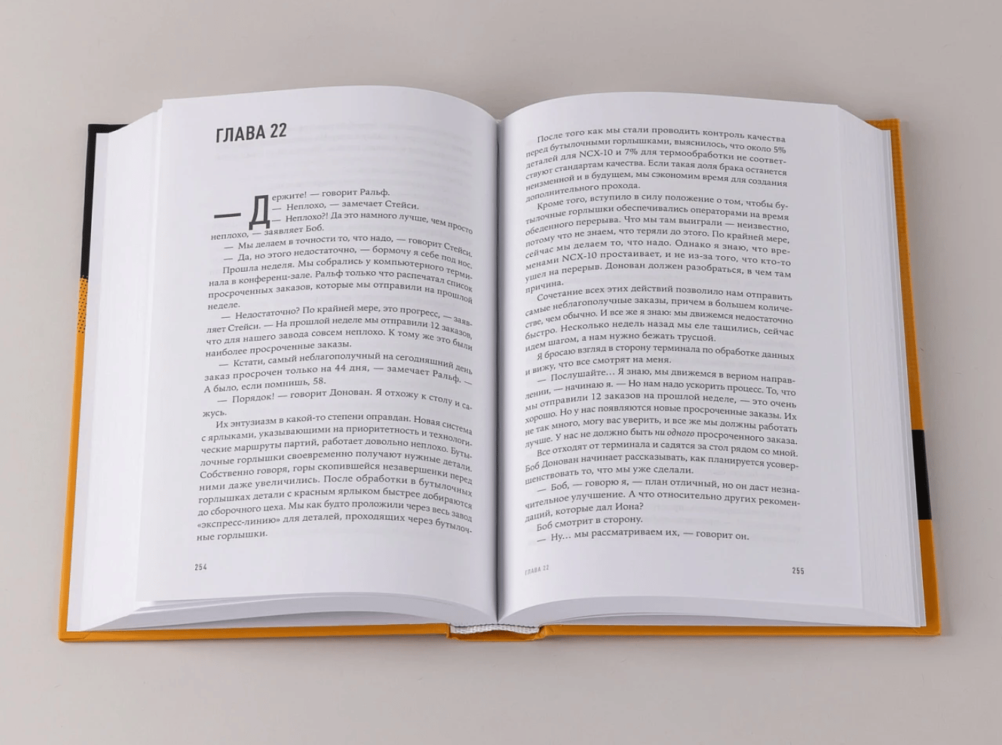 Бизнес-роман, который через художественное повествование раскрывает принципы управления, основанные на Теории ограничений (ТОС). Главный герой, директор завода Алекс Рого, сталкивается с кризисом: предприятие теряет деньги, заказы срываются, а руководство угрожает закрытием. С помощью наставника, физика Ионы, Алекс учится переосмысливать подходы к производству, фокусируясь на устранении системных ограничений и логическом анализе проблем.