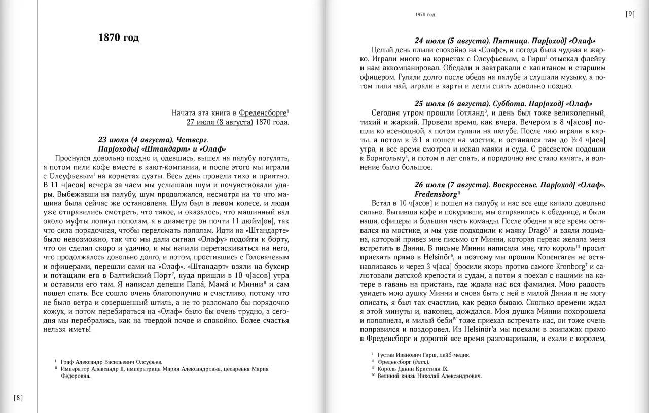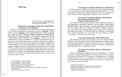 Четвертый том дневников цесаревича Александра Александровича охватывает насыщенные событиями пять лет жизни наследника престола — с августа 1875 по январь 1881 г. Дневник за этот период наследник вел нерегулярно, порой ничего в нем не записывая целыми месяцами и лишь позднее давая обобщенные описания событий в пропущенный период. Забросил он ведение дневника и на время пребывания в Действующей армии в годы Русско-турецкой войны. Ежедневные записи возобновились с ноября 1878 г , хотя при этом подчас делались постфактум, объединяя описания событий за несколько дней или недель. К этому времени цесаревич Александр Александрович становится зрелым государственным деятелем с собственными суждениями, полным решимости и воли воплотить свои замыслы в жизнь. Сильным потрясением для него стали очередные покушения на Александра II на Дворцовой площади 2 апреля 1879 г и 5 февраля 1880 г. Эти события стали поворотными в мироощущении, психологии и поведении цесаревича. Он начинает действовать, убеждая отца принять «самые энергичные меры», и добивается от него решения о создании Верховной распорядительной комиссии во главе с графом М. Т. Лорис-Меликовым, регулярные встречи с которым в Аничковом дворце фиксируют дневники. Подробные записи посвящены смерти в мае 1880 г императрицы Марии Александровны Александр Александрович достаточно подробно рассказывает в дневнике о днях прощания с императрицей в Зимнем дворце и о ее похоронах 28 мая в Петропавловском соборе. С грустью и сыновьей покорностью принимает он решение Александра II жениться на княжне Е. М. Долгоруковой.