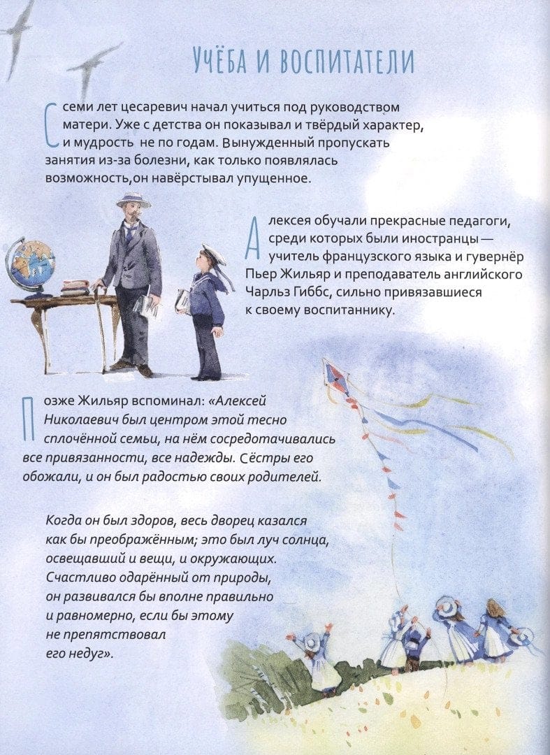 Цесаревич Алексей – наследник российского престола, сын императора Николая II и Александры Фёдоровны, мальчик, который жил 100 лет назад в России. У него было мягкое и доброе сердце, он любил и свою семью, и окружающих его простых людей, очень любил животных. Вся царская семья: император с императрицей и пятеро их детей – царевны Ольга, Татьяна, Мария, Анастасия и цесаревич Алексей – были причислены к лику святых за свою праведную жизнь и мученическую кончину. В этой книге рассказывается о жизни цесаревича Алексея.