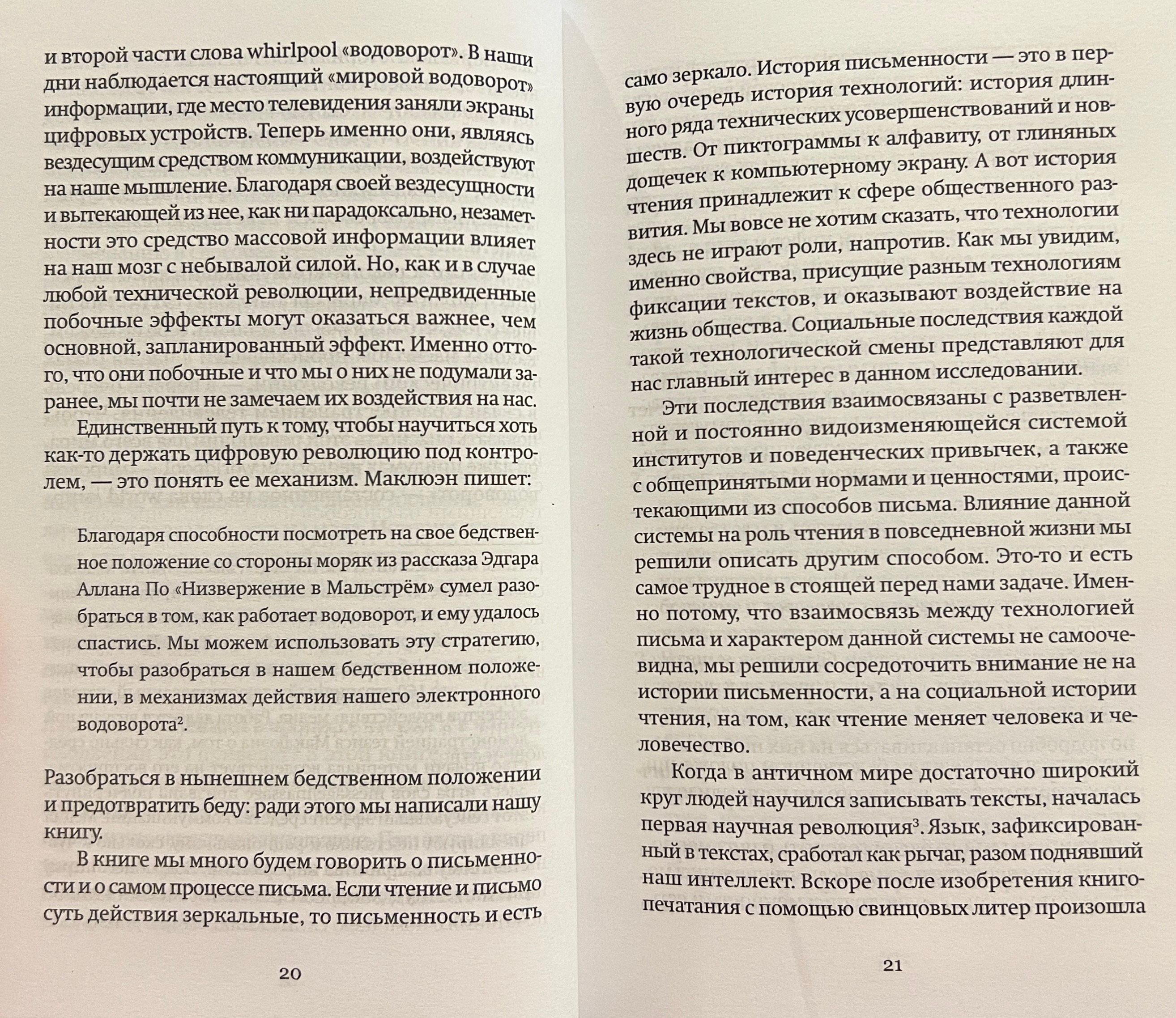 В книге описываются актуальные изменения в процессе чтения, рассказывается об истории происхождения литературы и о влиянии вдумчивого чтения на формирование критического мышления.