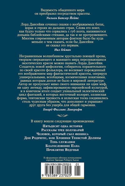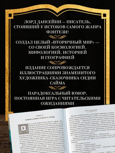 Часть произведений публикуется по-русски впервые или в новых переводах, остальные — в новой редакции. Издание сопровождается иллюстрациями знаменитого художника-сказочника Сидни Сайма, сделанными для первых публикаций книг Дансейни.