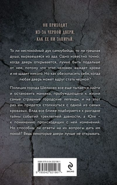 Полиция города Шелково все еще пытается найти и остановить маньяка, пробуждающего к жизни самые страшные городские легенды, и на этот раз им придется столкнуться с одной из самых кровавых. Влад все ближе подбирается к разгадке тайны событий трехлетней давности, а Юля — к пониманию происходящих с ней изменений. Но способны ли ответы на их вопросы дать им покой? Ведь некоторые двери лучше не открывать.
