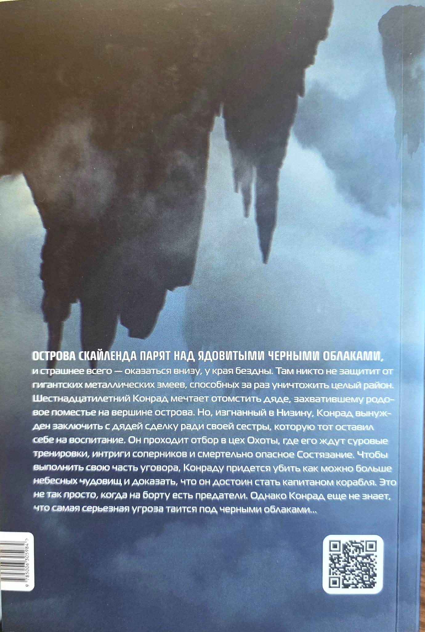 Острова Скайленда парят над ядовитыми черными облаками, и страшнее всего — оказаться внизу, у края бездны. Там никто не защитит от гигантских металлических змеев, способных за раз уничтожить целый район. Шестнадцатилетний Конрад мечтает отомстить дяде, захватившему родовое поместье на вершине острова. Но, изгнанный в Низину, Конрад вынужден заключить с дядей сделку ради своей сестры, которую тот оставил себе на воспитание. Он проходит отбор в цех Охоты, где его ждут суровые тренировки, интриги соперников и смертельно опасное Состязание.
