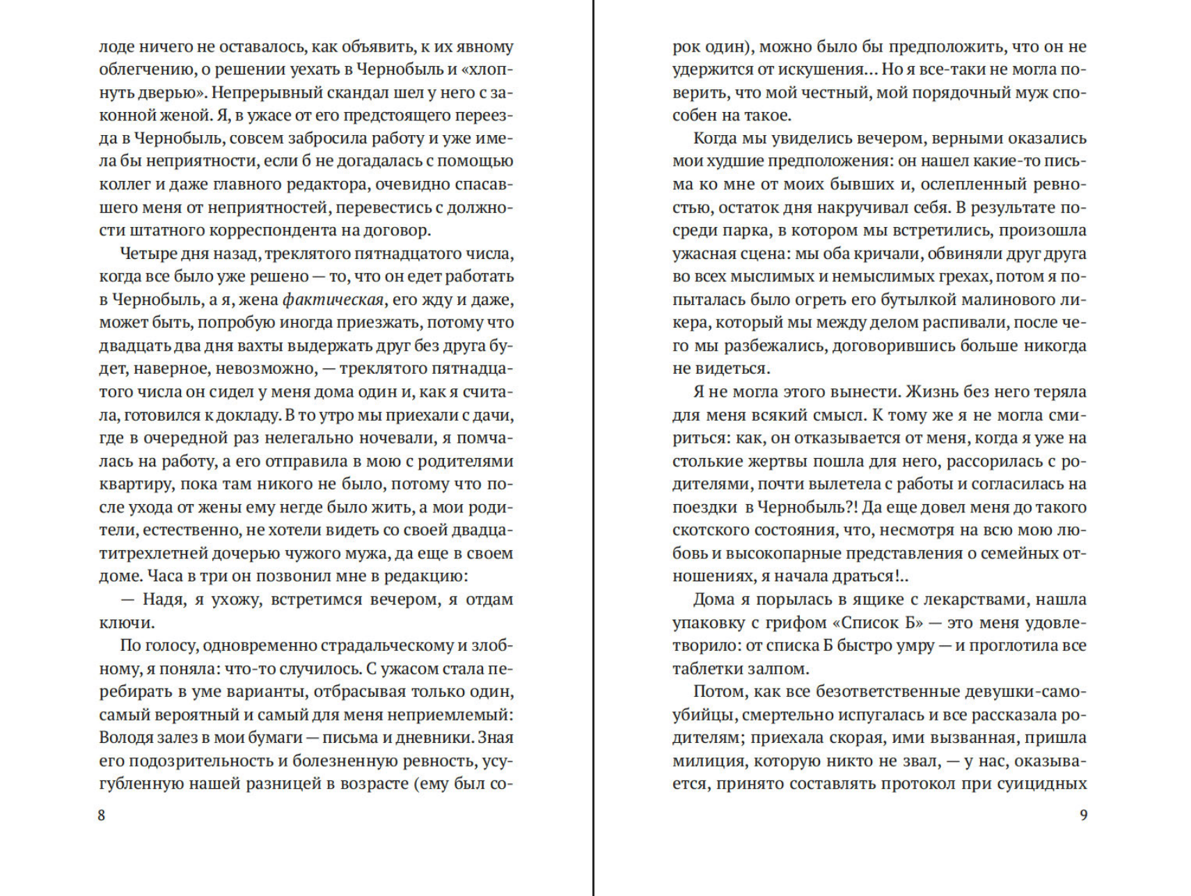СССР, 1987 год. Жизнь и карьера двадцатидвухлетней столичной журналистки Надежды Петренко сложилась бы вполне удачно, не встреть она Любовь — сорокалетнего инженера-физика, женатого и «морально неустойчивого». Владимир поехал в Чернобыль на ликвидацию последствий аварии, и Надя решила последовать за ним — несмотря на то, что при этом теряла все: работу, семью, друзей… Была ли это настоящая любовь — или самая большая ошибка в ее жизни?