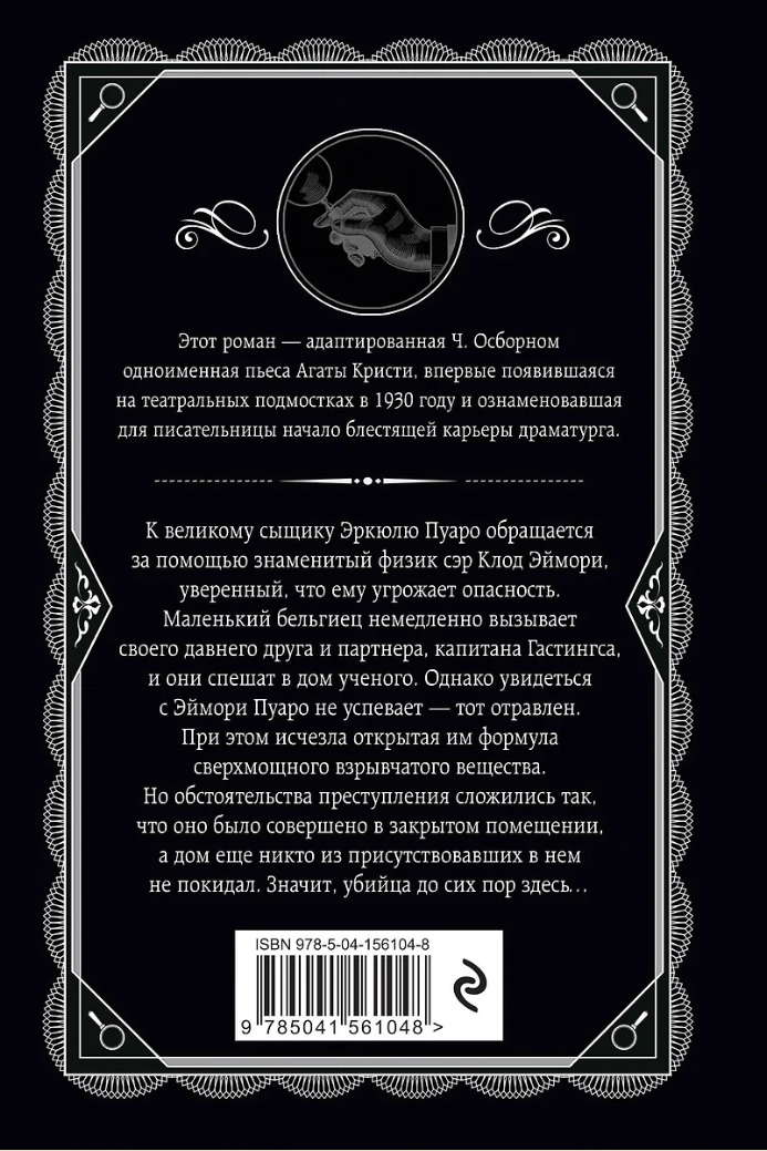 К великому сыщику Эркюлю Пуаро обращается за помощью знаменитый физик сэр Клод Эймори, уверенный, что ему угрожает опасность. Маленький бельгиец немедленно вызывает своего давнего друга и партнера, капитана Гастингса, и они спешат в дом ученого. Однако увидеться с Эймори Пуаро не успевает – тот отравлен. При этом исчезла открытая им формула сверхмощного взрывчатого вещества. Но обстоятельства преступления сложились так, что оно было совершено в закрытом помещении, а дом еще никто из присутствовавших в нем не покидал. Значит, убийца до сих пор здесь…