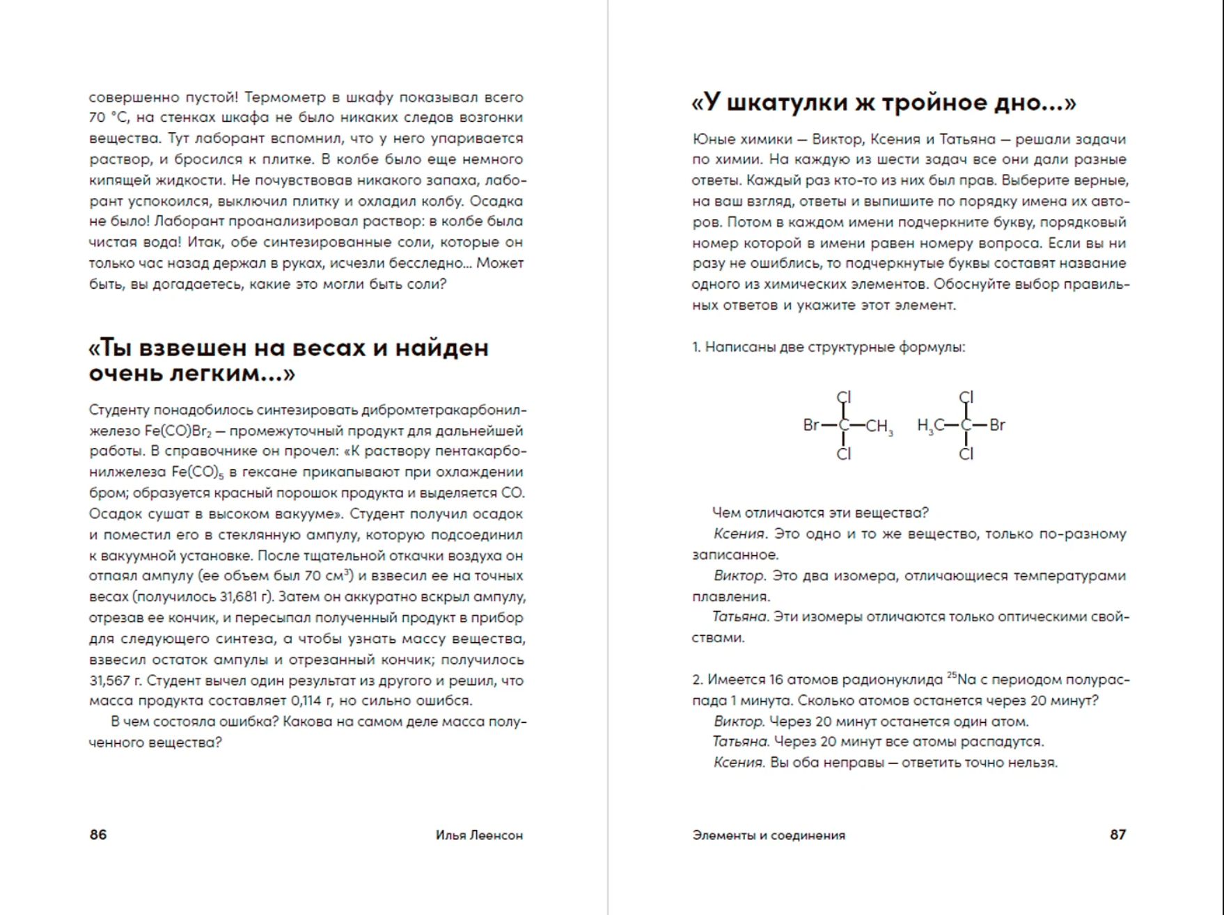 Замечательный химик и популяризатор науки Илья Леенсон был автором не только множества книг, но и уникальных задач, большую часть которых он придумывал для Московского интеллектуального марафона и Летних лингвистических школ. Теперь они объединены в один сборник, и у читателя есть возможность познакомиться с этими остроумными и нестандартными задачами из самых разных областей знания – от астрономии до химии, от русской поэзии до скандинавской мифологии, от криптографии до нумизматики.