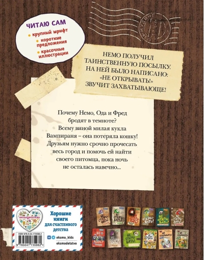 Теперь дети 5—7 смогут читать популярную историю «Таинственной посылки» самостоятельно: для них создан адаптированный пересказ и нарисованы цветные иллюстрации! Короткие предложения, простые слова и захватывающий сюжет — всё, что нужно, чтобы ребёнок полюбил чтение.