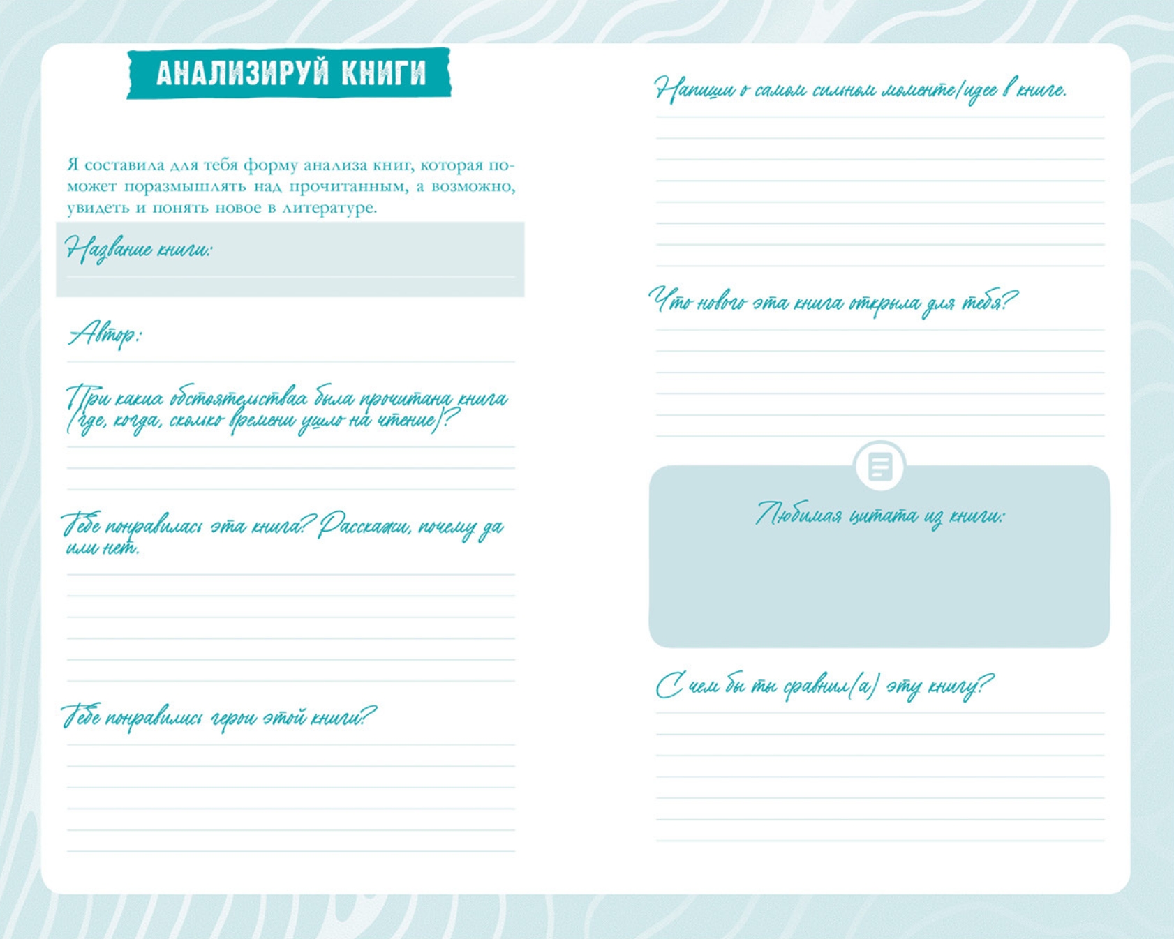 «Читательский дневник от Анны Джейн» был создан Анной Джейн для читателей, блогеров и будущих писателей, влюбленных в книги. В дневнике есть списки любимых фильмов, песен и книг Анны, а также инструменты для анализа романов, ведения записей, планирования и самопомощи.