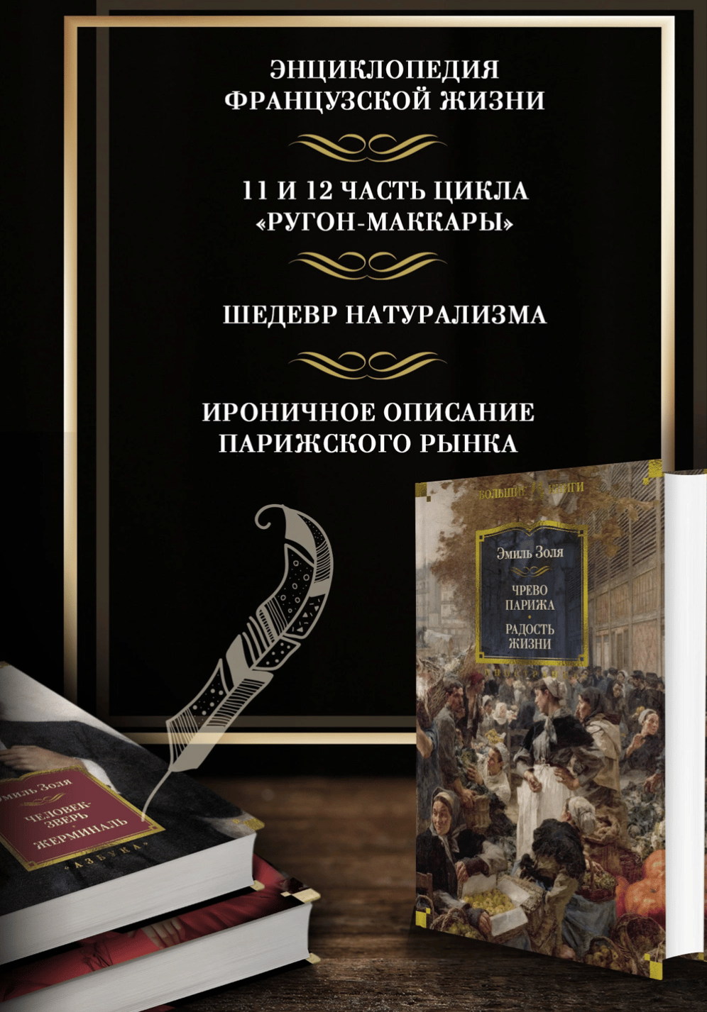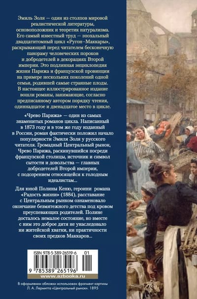 «Чрево Парижа» — один из самых знаменитых романов цикла. Написанный в 1873 году и в том же году изданный в России, роман фактически положил начало популярности Эмиля Золя у русского читателя. Громадный Центральный рынок, Чрево Парижа, раскинувшийся посреди французской столицы, источник и символ сытости и довольства — главных добродетелей Второй империи, с подозрением относящейся к голодным идеалистам… Для юной Полины Кеню, героини одного из главных шедевров натурализма — романа «Радость жизни» (1884), расставание с Центральным рынком ознаменовало окончание безмятежного детства под кровом преуспевающих родителей. Полине досталось немалое состояние, но вместе с ним это доброе дитя не унаследовало ни житейской хватки, ни практичности своих предков Маккаров...
